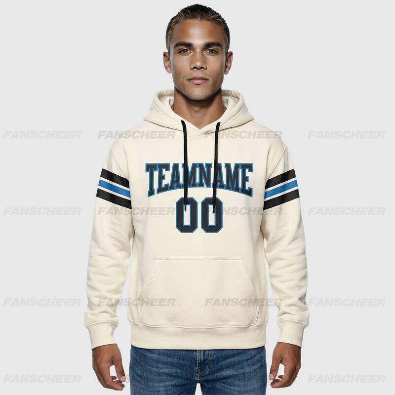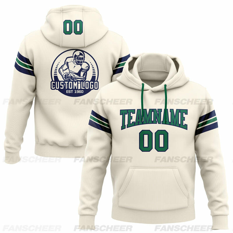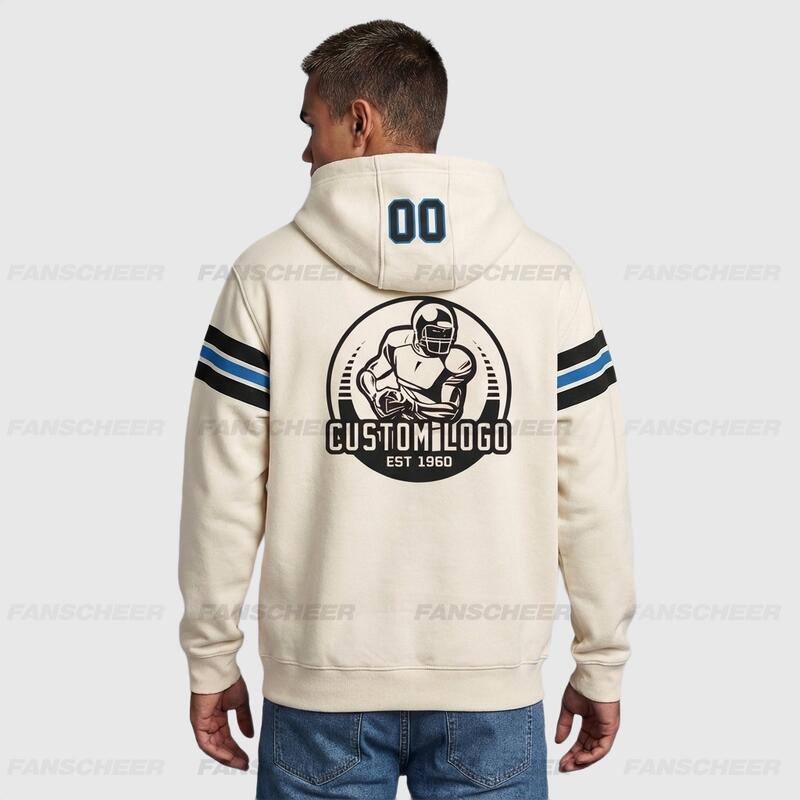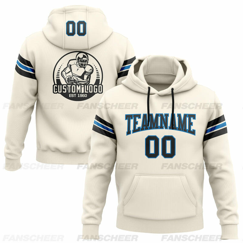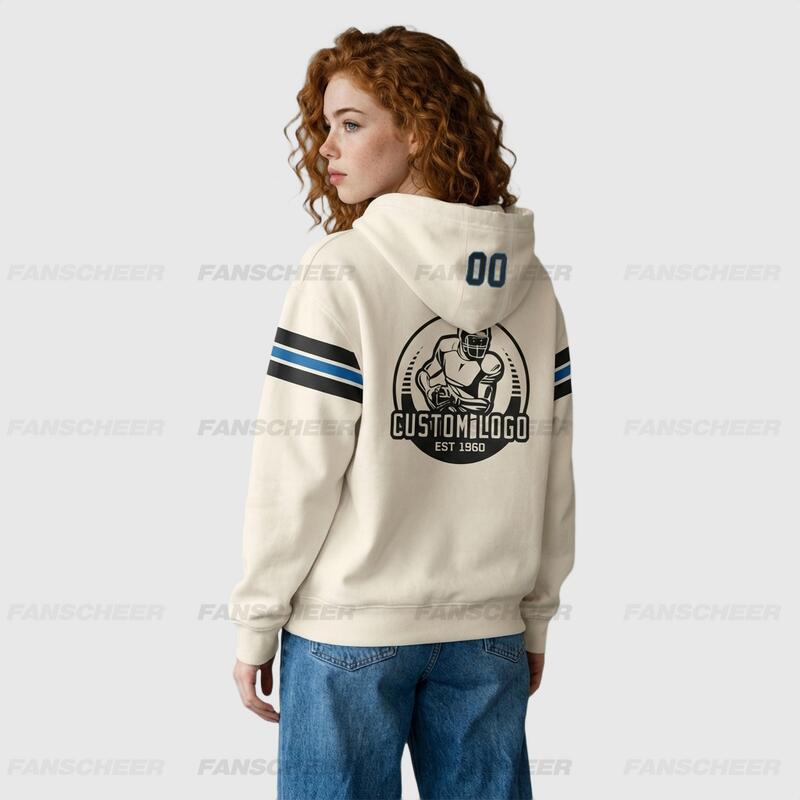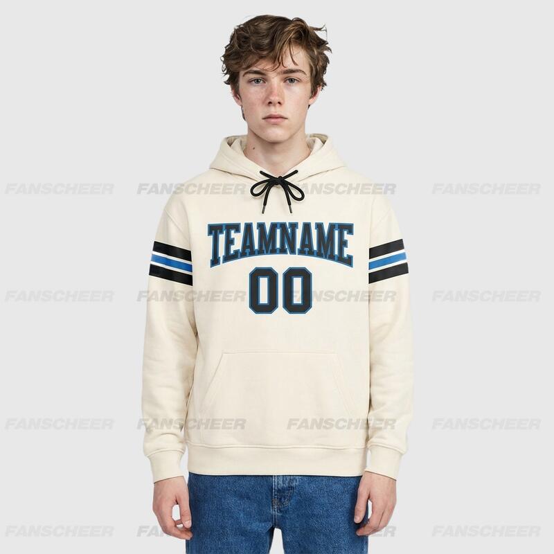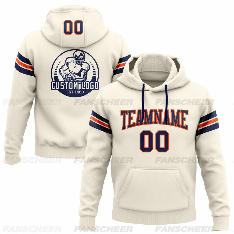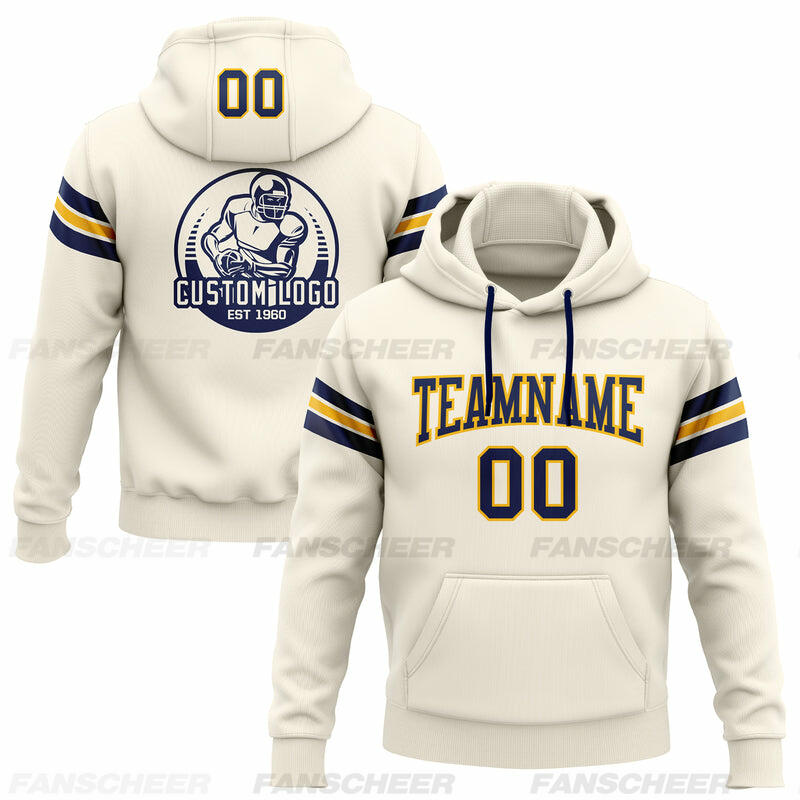 Soft Custom Stitched Cream Football Pullover Hoodie Cozy Material Personalized Team Name & Number