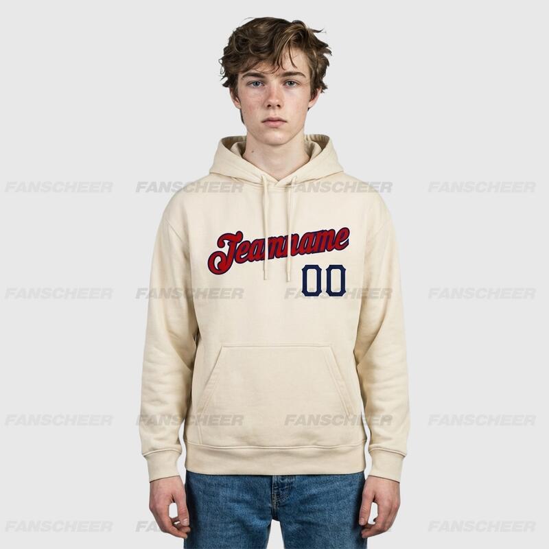 Soft Custom Stitched Cream Sports Pullover Hoodie Comfortable Fabric Custom Team Name & Unique Number