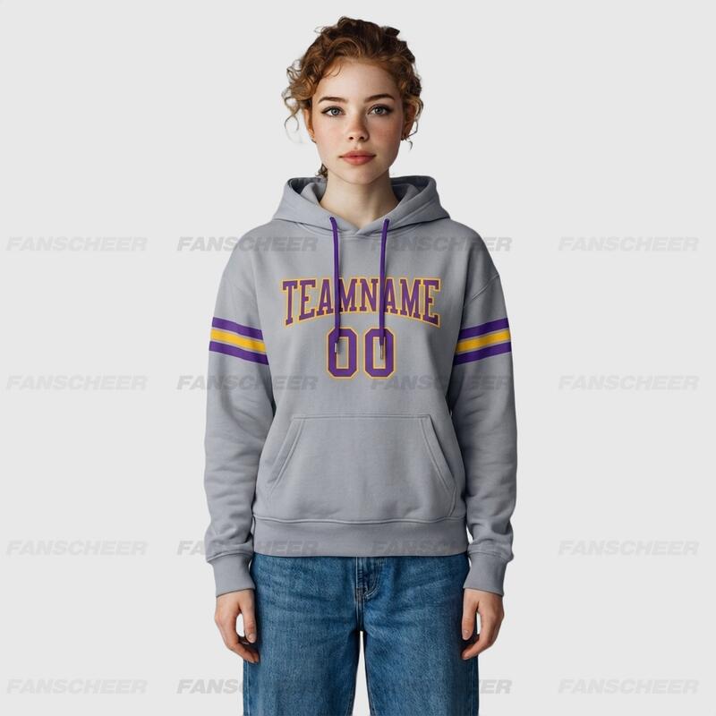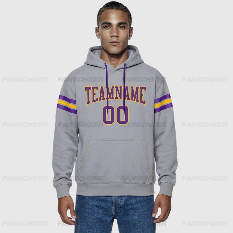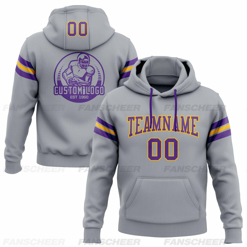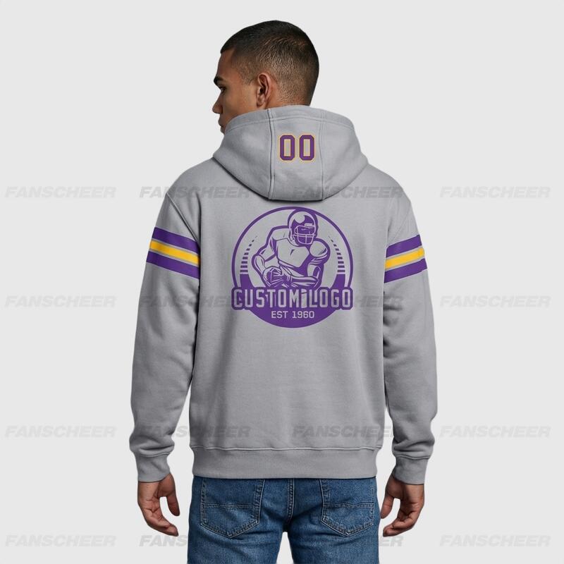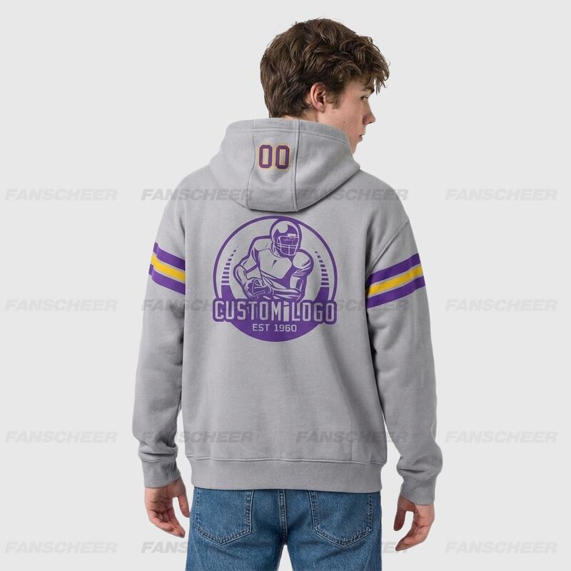Soft Custom Stitched Gray Football Pullover Hoodie Cozy Ideal for Sports Personalized Team Logo & Chosen Number