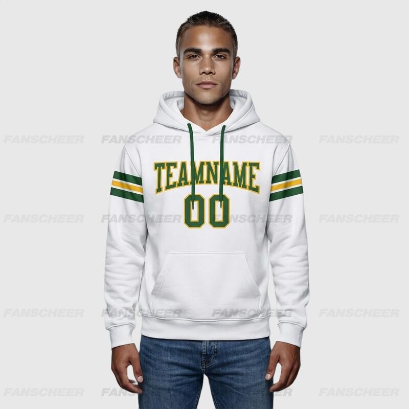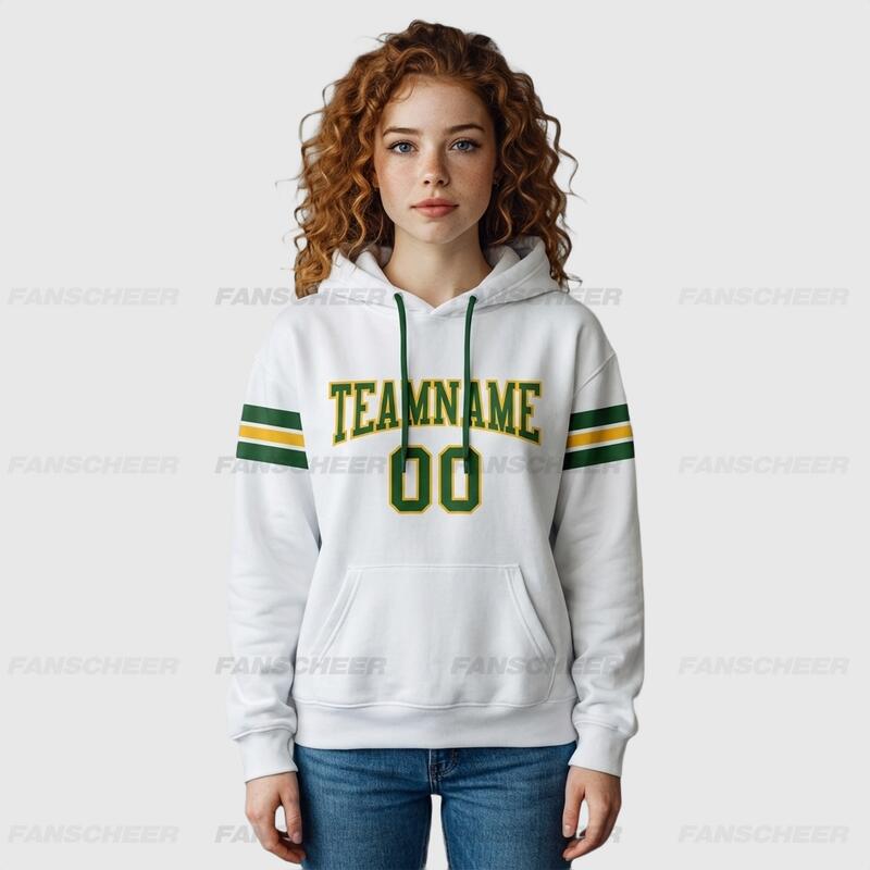 The Fanscheer custom pullover sweatshirt hoodie blends comfort with style, a masterpiece crafted with meticulous attention to detail. Slip into this custom hoodie featuring embroidered numbers and get ready to unwind while showcasing your unique flair.