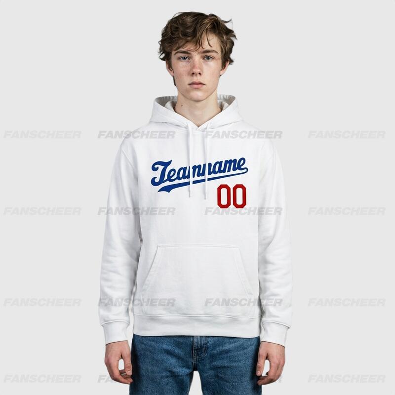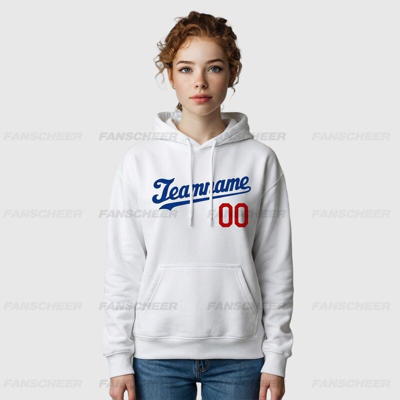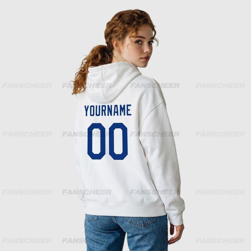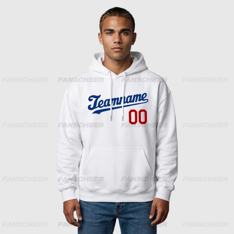 The Fanscheer custom pullover sweatshirt hoodie blends comfort with style, a masterpiece crafted with meticulous attention to detail. Slip into this custom hoodie featuring embroidered numbers and get ready to unwind while showcasing your unique flair.