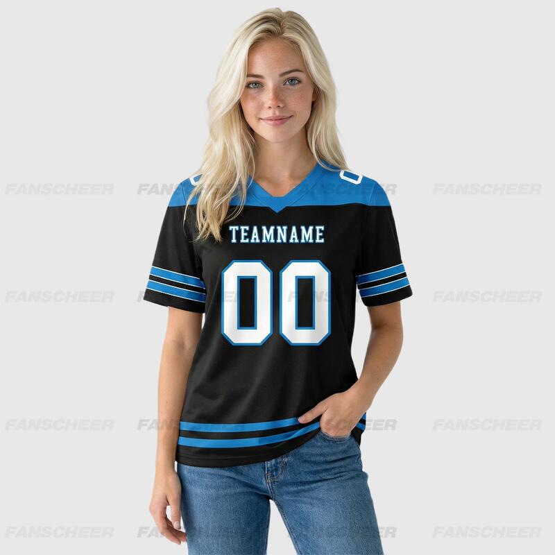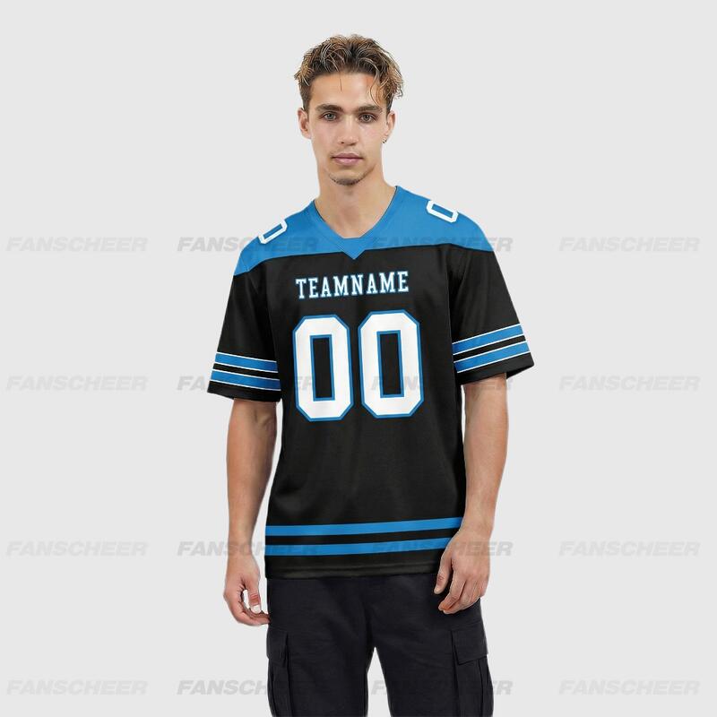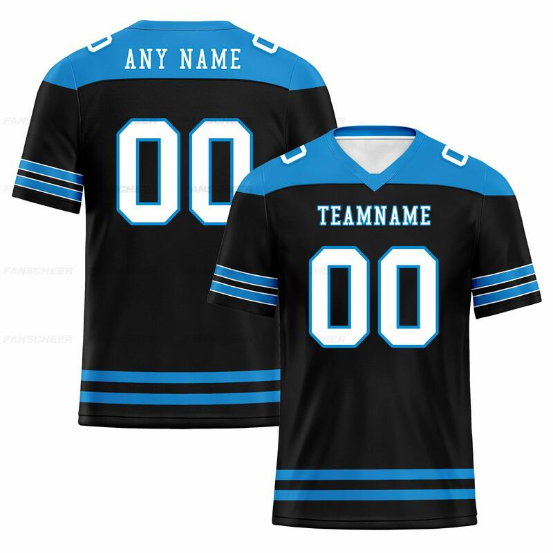 Team-Style Custom Black Blue Football Fan Jersey - Inspired Colors Personalized Fit for Football Enthusiasts